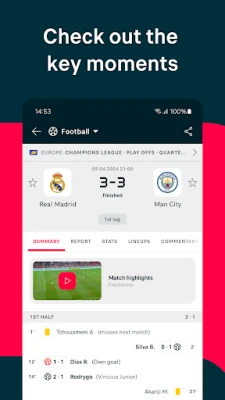 Pored brzine, Flashscore vam donosi i izuzetnu dubinu sadržaja. Očekujte pronicljive sportske vesti, ekskluzivne intervjue, najnovije glasine o transferima i detaljne analize podataka. Naša personalizovana sekcija "Favoriti" osigurava da nikada ne propustite važne momente: primajte obaveštenja o najvažnijim vestima, upozorenja o golovima i prilagođene podsetnike za vaše omiljene timove, takmičenja ili mečeve. Pratite svoje omiljene igrače i budite obavešteni o njihovom učešću u početnoj postavi, postignutim golovima, kartonima i ocenama, dok vam stručne najave mečeva i projektovane postave daju prednost u razumevanju igre.