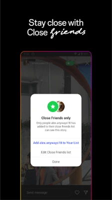 Podelite svoje trenutke na autentične i kreativne načine uz Instagram. Uz Priče i Beleške, možete brzo i spontano objaviti sadržaj koji nestaje nakon 24 sata, održavajući interakciju sa prijateljima brzom i zabavnom. Započnite intimne grupne razgovore i podelite nefiltrisane trenutke sa svojim Bliskim prijateljima. Oživite uspomene sa putovanja ili važnih događaja u Fidu ili pretvorite svoj život u niz uzbudljivih scena uz Reels – kratke, zarazne video snimke koji pružaju neograničenu zabavu. Svaku objavu možete personalizovati ekskluzivnim šablonima, ritmičnom muzikom, živopisnim stikerima i jedinstvenim filterima, pretvarajući obične slike i video zapise u mala umetnička dela.