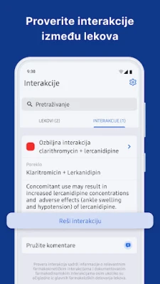 Koristite Proveru interakcija i Alat za rešavanje interakcija između lekova, funkciju koju su najviše tražili evropski lekari. Brzo i pouzdano proverite i razrešite interakcije, obezbeđujući sigurnu i efikasnu terapiju. Vaš nezamenljivi partner u praksi.