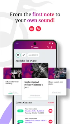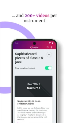 Uz music2me, učenje je vizuelno i interaktivno. Dok pratite naše pažljivo osmišljene video lekcije, uvek ćete imati jasan pregled klavijature ili hvataljke gitare, praćen preciznim notnim zapisima za lakše sviranje. Naš jedinstveni režim vežbanja omogućava vam da obeležite i beskonačno ponavljate specifične delove kompozicija, prilagođavajući tempo vašem individualnom napretku. Dodatna pogodnost je mogućnost preuzimanja celokupnog sadržaja, što vam obezbeđuje pristup materijalima za učenje bilo kada i bilo gde, čak i bez internet veze. Istražite svet popa, roka, filmske muzike, džeza i klasike uz naše tutorijale i notne zapise, sve uz pregledno objašnjenu teoriju i praksu.