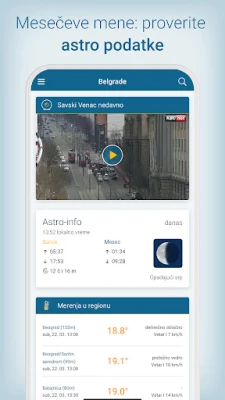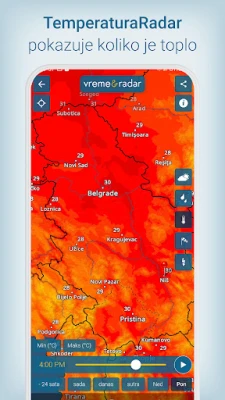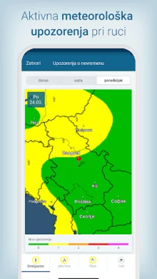 Iskoristite napredni animirani vremenski radar koji vizualizuje kretanje oblaka, intenzitet padavina – bilo da je reč o kiši, snegu ili gradu – i položaje grmljavina. Ova funkcija vam omogućava da jasno vidite razvoj vremenskih prilika i predvidite potencijalne oluje na vašoj lokaciji, bilo da ste u Beogradu ili nekom drugom gradu. Uz to, Vreme & Radar vas obaveštava o opasnim vremenskim uslovima, šaljući upozorenja za ekstremne pojave poput jakih grmljavina ili obilnog snega, čime osigurava vašu bezbednost.